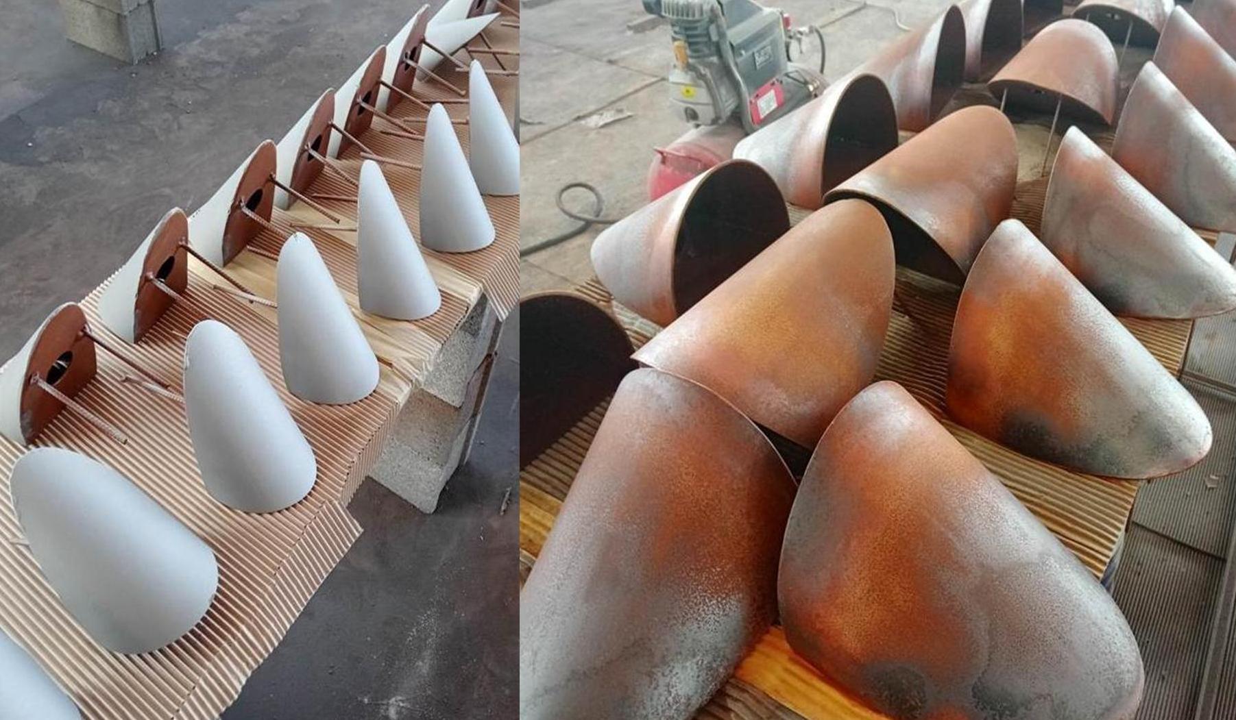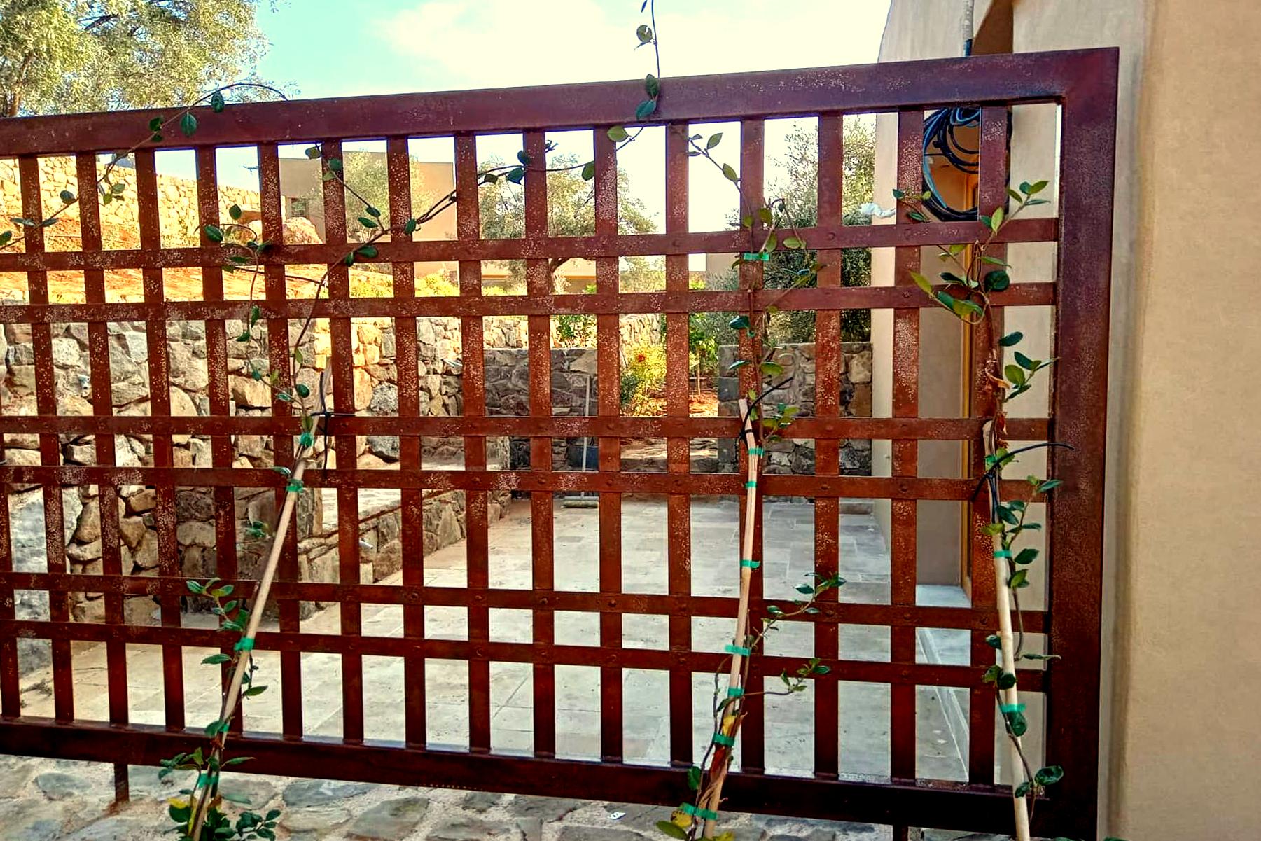 Εφαρμογή τεχνικής οξείδωσης σιδήρου σε μεταλλικές κατασκευές (φωτιστικά, πόρτες, πέργκολες)